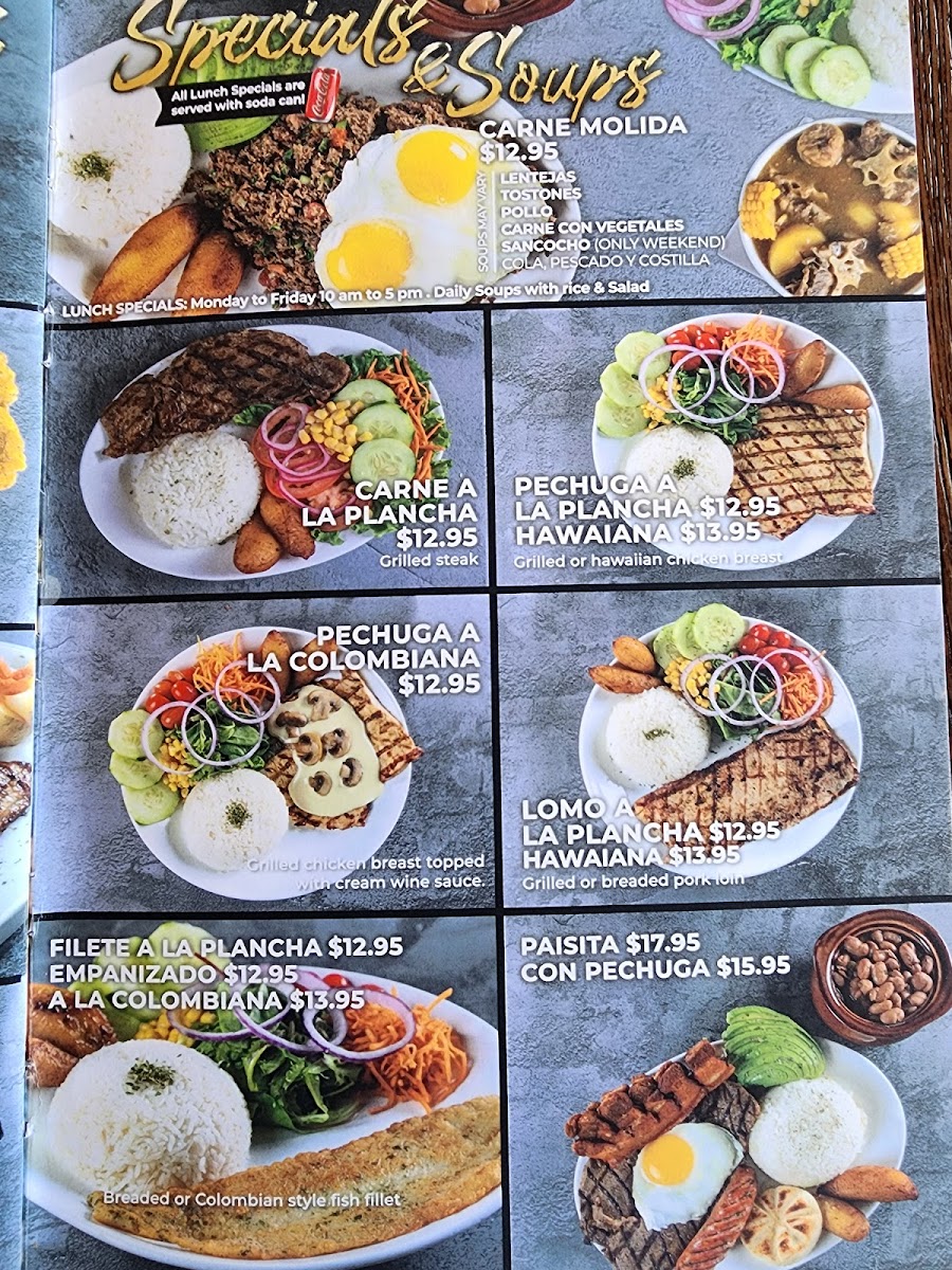 Colombian flavor bomb: tender grilled steak seared to perfection, paired with cloud-soft white rice, a crisp house salad kissed with homemade charm, and your choice of smoky beans or soul-warming soup of the day. This isn’t just a meal—it’s a seduction on a plate. Una explosión de sabor colombiano: jugosa carne asada al punto perfecto, acompañada de arroz blanco suave como nube, ensalada fresca con el toque casero que enamora, y tu elección entre frijoles humeantes o la sopa del día que calienta el alma. Este plato no se come... se conquista.